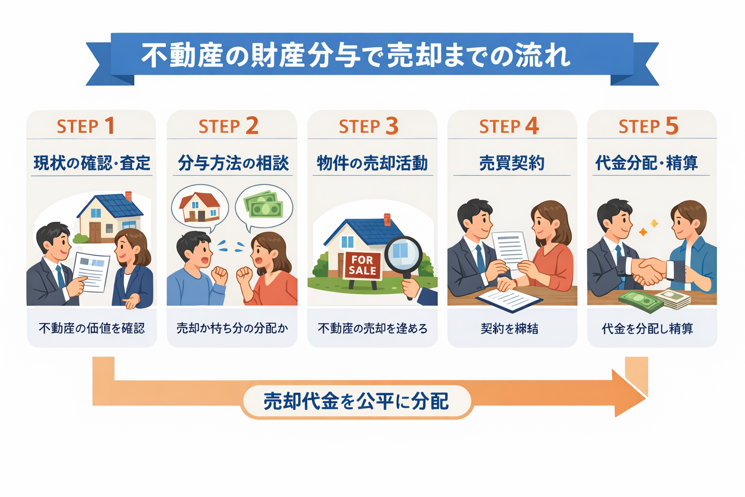 夫婦間での直接交渉は不要です。弁護士と連携し、公平・中立な立場でスムーズな売却をサポートします。